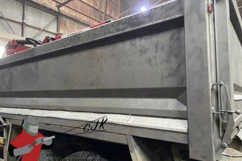 Abrasive blasting a truck body to remove paint. As part of a general tidy up for the new addition, to the customers fleet.